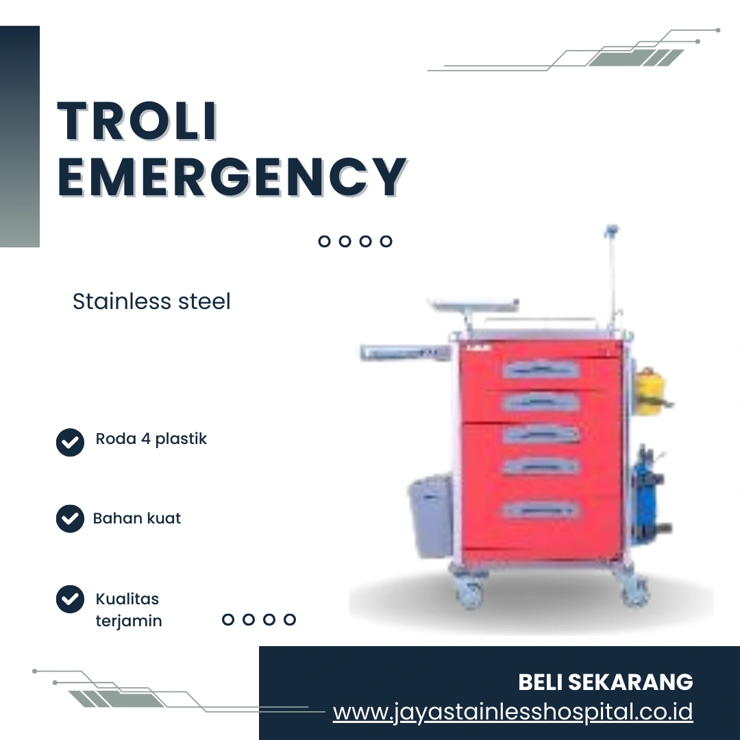 Troli emergency adalah salah satu peralatan medis yang sangat penting dalam sebuah rumah sakit, khususnya di ruang gawat darurat (IGD). Alat ini dirancang khusus untuk memudahkan tenaga medis dalam menangani pasien dengan kondisi kritis atau darurat.
